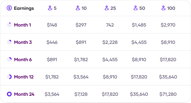 Every referral makes you 20 - 30% of their payments for life - each month!